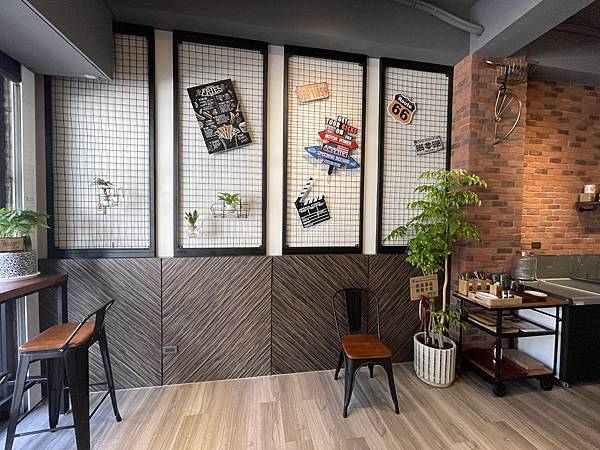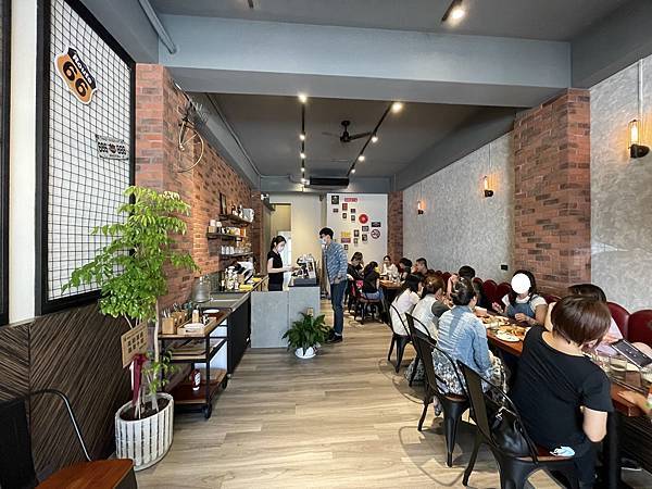 店內工業風裝潢風格,還有一些綠色植栽,桌數位置不算多,且這天是全滿的狀態,店員有提示餐點是現做會等比較久,我們是最後入內用餐的客人,所以的確是等全數餐點上完才輪到我們是有點漫長~~但餐點美味好像就可以忍受,我可以接受他們這個用心的料理模式!
