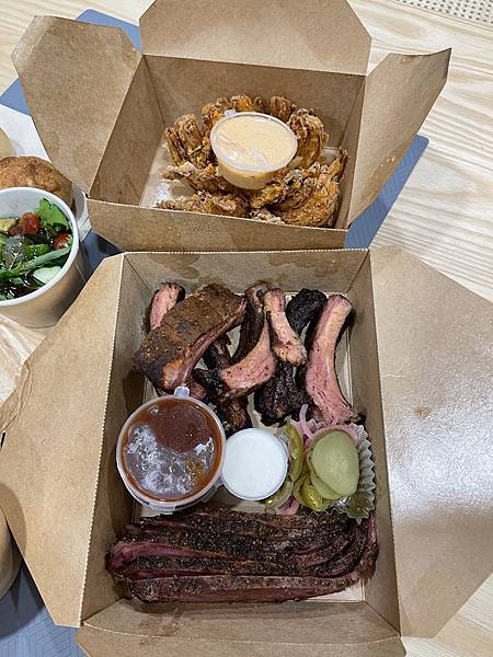 自從新竹沒有Friday和OUTBACK之後我就沒什麼機會吃到酥炸洋蔥花,這次總算大快朵頤滿足到不行!!!而主打的12HR煙燻牛胸肉當天吃起來有點偏乾,是裡面我覺得比較普通的主菜,然後豬肋排則是表現得很好,入味又軟嫩,那種一拉就骨肉分離的感覺,舒服~